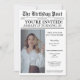 Célébrez un jalon dans le style avec cette Unique 20th Birthday Party Newspaper Cover Photo Invitation. Le devant comprend une photo personnalisable et tous les détails essentiels de la fête - de la date et de l'heure à l'endroit Au fond, ajoutez une autre photo de l'étoile d'anniversaire et un fait amusant pour rendre l'invitation encore plus personnel et mémorable. Une façon parfaite de créer des souvenirs durables pour cette journée spéciale!