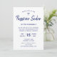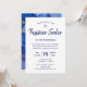 Un devant en art abstrait magnifique et une invitation bleue au dos. Invitez votre famille et vos amis à un Seder de Pâque chez vous avec cette belle invitation abstraite bleue et or. Utilisez l'outil d'édition de Zazzle pour modifier facilement les détails de l'invitation avec vos propres informations d'événement et coordonnées RSVP. Invitation unique bleu et or pour le Seder de Pâque. Chag Sameach Pesach !