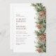 Ce faire-part de mariage de vacances d'hiver moderne présente une aquarelle peinte à la main et des pinecones disposés comme un beau cadre latéral. Le texte est brun et l'arrière - plan blanc. Trouvez les articles correspondants dans la collection Vacances de Noël Pinecone and Greenery.