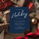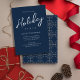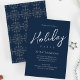 Ce design comprend une invitation de script de calligraphie de Noël avec un design moderne et tendance flocons d'argent, un design classique bleu marine motif, un style minimaliste simple, créatif stylisé police de texte de typographie, une élégance simpliste élégante contemporaine, vacances de Noël se réunir, amis famille affaires événement, un Noël invitation simple, audacieux texte blanc typographie