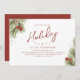 Ce design comprend une invitation à la calligraphie de Noël avec feuillage verdoyant des baies sèches d'hiver, une feuille feuille de branche de pin botanique, un design classique rouge et vert, avec un style minimaliste simple, une police de texte de typographie créative et stylisée, une élégance simpliste élégante et contemporaine pour les vacances de Noël se réunir, une famille amis affaires entreprise événement, un classique élégant
