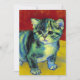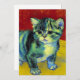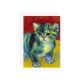 Carte avec un chat tabby dans le style de Van Gogh! Ce chaton sucré pose adorablement sur un parquet contre des murs rouges et une fenêtre. Un cadeau génial pour les amoureux de les chats et les collectionneurs d'art hollandais !