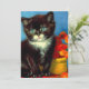 Carte avec un beau chat Van Gogh tuxedo ! Ce petit chaton pose à côté d'un panier de fleurs orange sur une table rouge. Un grand cadeau pour les amoureux de les chats et les collectionneurs d'art hollandais !