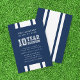Varsity 10 année de réunion invitation avec les mots "Réunion de 10 ans" dans un style collégial de variété contre un motif rayures blanches et une couleur arrière - plan modifiable (cliquez sur personnaliser pour changer) sur le devant. La carte a un motif à bandes blanches contre une couleur arrière - plan modifiable (cliquez sur personnaliser pour modifier) pour le côté arrière. Personnalisez-le en remplaçant le texte de l'espace réservé. Pour plus d'options comme changer la police et sa taille/couleur ou l'espacement entre les lettres cliquez sur le bouton "Personnaliser". *Veuillez noter que le filigrane Zazzle qui apparaît dans l'aperçu du zoom n'apparaîtra PAS sur le produit imprimé final. © Bois de rose et agrumes