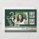 Invitation photo de graduation en rayures vert foncé et or pour 2014 avec place pour trois photos préférées. Personnaliser pour les gars ou les filles avec un nom sur le devant dans la même couleur vert foncé que l'invitation et ajouter tous vos faire-part de graduation et détails de fête à l'arrière en texte blanc. Modifiez les polices comme vous le souhaitez.
