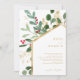 Cette verdure de Noël moderne | faire-part de mariage blanche est parfait pour votre simple mariage d'hiver boho. Conçu avec une feuille d'or imitation géométrique et une aquarelle botanique minimaliste avec des touches d'eucalyptus vert et d'airelle rouge. Le tout sur un arrière - plan blanc classique. Ces éléments lui confèrent une atmosphère moderne et élégante, qui ne manquera pas de compléter le look recherché ! Vous pouvez personnaliser avec vos propres photos ou le garder tel quel. N'oubliez pas de parcourir le reste de la collection pour compléter votre thème mariage !