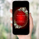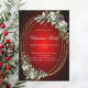 Un arrière - plan à dégradé rouge décoré de cônes, de baies blanches et de verdure. Un cadre ovale en faux or. Personnalisez et ajoutez les détails.