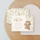 Une jolie invitation à baby shower sur le thème du bois avec une illustration d'aquarelle d'un ourson aux branches verdoyantes de la forêt et de feuilles autour. Le texte "we can bearly wait!" apparaît dans la typographie de serif et de script moderne. Parfait pour un baby shower d'automne ou d'hiver.