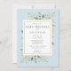 Doté de feuilles d'aquarelle douce à l'eucalyptus, cette invitation à saupoudrer moderne bleu bébé peut être personnalisée avec vos détails spéciaux d'arrosage bébé, avec un arrière - plan bleu bébé assorti au verso. Conçu par Thisisnotme©