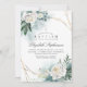 Verdure aquarelle, cadre géométrique or et pivoines blanches invitations baptême