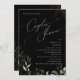 Entrez dans un monde enchanteur avec notre verdure fantaisiste et notre or | invitation à la douche de couple noir, parfait pour votre douche botanique de printemps botanique. Décorée d'eucalyptus vert sauge et d'accents dorés, cette invitation exhale élégance et fantaisie moderne. Imaginez vous promener dans un jardin d'été magique, entouré par les sons apaisants de la nature. Le design saisit sans effort le charme rustique de l'automne avec ses teintes vert clair, évoquant la beauté de la saison changeante. Avec une touche de sophistication minimaliste et une touche bohème classique, les détails chatoyants de la feuille d'or ajoutent une touche de glamour et de romance. Complète avec une atmosphère de conte de fées gracieuse, cette invitation exsude classe et met en valeur la splendeur naturelle de l'automne. N'hésitez pas à nous contacter pour toute question sur le design, et laissez-nous vous aider à faire le mariage de vos rêves.