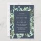 Chic et élégant faire-part de mariage botanique d'eucalyptus. Frammentez vos détails du jour de mariage avec des feuilles eucalyptus dans la verdure et le feuillage bleu avec un arrière - plan bleu nuit et des lettres blanches élégantes. Personnalisez facilement ce modèle d'invitation avec les détails de votre jour de mariage.