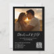Cet élégant faire-part de mariage à cordes florales en noir et blanc peut être personnalisé avec vos informations en typographie chic avec votre photo spéciale, les détails du site mariage et votre code QR au verso. Conçu par Thisisnotme©