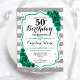 Invitation à la fête du 50e anniversaire. Elégant design floral vert émeraude avec rose. Caractéristiques fausse parties scintillant argent et blanc rayures et police de script. Idéal pour une célébration anniversaire féminine élégante. Peut être customisé pour n'importe quel âge ! Invitations Zazzle imprimées ou téléchargement instantané modèle imprimable numérique.