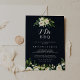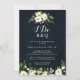 Cette invitation à la fête de fiançailles du barbecue vert blanc et fleuri est parfaite pour une fête de fiançailles rustiques, un dîner de répétition, une douche en couple, une soirée après la fête ou tout événement mariage dans un arrière - plan bleu foncé. Le design est doté d'élégantes pivoines blanches aquarelles avec feuillage vert.