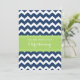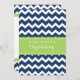Le bleu marine foncé moderne et coloré et les zigzags lumineux de chevron de vert de chaux barre l'invitation de baptême pour le garçon.