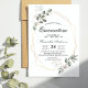 Une invitation extérieure Eucalyptus est une invitation magnifiquement conçue qui est parfaite pour tout événement ou rassemblement en plein air. L'invitation présente généralement un design élégant et rustique, avec des feuilles d'eucalyptus verts luxuriants comme point central. Les feuilles servent souvent de frontière naturelle ou de cadre pour le texte et les graphiques de l'invitation, créant un look sophistiqué et accueillant. Ces invitations sont souvent utilisées pour des événements extérieurs tels que des mariages, des fêtes de jardin et d'autres célébrations sur le thème de la nature. Ils peuvent être customisés pour inclure les détails spécifiques de l'événement, tels que la date, l'heure, l'emplacement et les informations RSVP. Certaines invitations extérieures à l'eucalyptus comprennent également des éléments de design supplémentaires tels que des accents floraux, des arrière - plans d'aquarelle ou des polices de calligraphie pour ajouter une touche d'élégance supplémentaire.