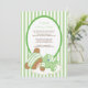 Invitation mignonne de baby shower d'ours de nounours. Caractéristiques de conception que l'ours de bébé de sommeil le plus mignon a placées sur un arrière - plan vert et blanc de rayure. Timbres-poste et autocollants assortis disponibles dans notre magasin chez www.clebrateitinvites.com
