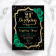 Invitation de fête du 21e anniversaire. Design vert émeraude floral élégant avec de l'or de parties scintillant, des roses et des caractères de script. Idéal pour une célébration anniversaire féminine élégante. Peut être customisé pour n'importe quel âge ! Invitations Zazzle imprimées ou téléchargement instantané modèle imprimable numérique.