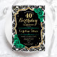 Invitation à la fête du 40e anniversaire. Design vert émeraude floral élégant avec de l'or parties scintillant et des roses. Fonctionne en noir et blanc damas motif et police de script. Idéal pour une célébration anniversaire féminine élégante. Peut être customisé pour n'importe quel âge ! Invitations Zazzle imprimées ou téléchargement instantané modèle imprimable numérique.