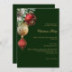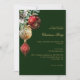 Élégante invitation de Noël d'affaires avec code QR au dos pour RSVP et détails. Invitation votre équipe pour fêter la saison des Fêtes avec cette invitation de Noël design et moderne. Avec un élégant arrière - plan vert, le design est joliment décoré avec des boules rouges et or festives, de la verdure et un cône de pin pour une touche classique. Personnalisez-le avec les détails de l’événement de votre entreprise afin de créer une invitation professionnelle et sophistiquée, idéale pour votre réunion de vacances d’entreprise.