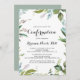 Cette invitation à la calligraphie tropicale moderne et verdoyante est parfaite pour un simple événement religieux. Le design est composé de feuilles tropicaux à dominante verte avec une touche de fleurs blanches roses.