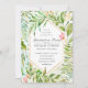 Une carte élégante d'invitation de fête de remise des diplômes comportant le feuillage vert sauvage d'aquarelle avec les fleurs roses. Pour une personnalisation plus avancée de cette conception, cliquez sur svp le bouton de "personnaliser" ci-dessus ! Les articles assortis sont également disponibles.