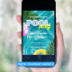 C'est une invitation vibrante et animée à la fête de la piscine qui respire le plaisir et l'excitation. L'arrière - plan est agrémentée d'une eau bleue tourbillonnante qui donne l'impression d'une piscine rafraîchissante. Les feuilles de palmiers tropicaux sont stratégiquement placés autour des bords, ajoutant une touche exotique. Une boule de plage colorée et un anneau de flotteurs jaunes renforcent encore l'atmosphère estivale. Le texte est audacieux et accrocheur, avec "POOL PARTY" en grandes lettres joueuses qui se démarquent contre l'arrière - plan bleu cool. Une invitation qui fera le bonheur des clients !