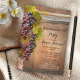 Une invitation romantique à la fête de la bachelorette avec une vigne à raisins sur un tonneau de vin en bois avec dentelle et corde.