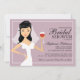 Une jolie mariée aux cheveux bruns toasts à la famille et amis avec un verre de vin dans cette prise moderne sur une invitation à la douche nuptiale. Arrière - plan mauve populaire avec texte noir. Parfait pour une douche à thème vin ou pour une mariée qui aime le vin.