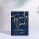 Invitation Vingt et un | Blue & Gold Chic 21e fête d'annivers