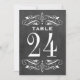 Les cartes de numéro de table mariage de style vintage sont ornées de tourbillons blancs décoratifs et fleurissent des deux côtés de la carte. L'Arrière - plan a un aspect rustique noir tableau noir texturé. Personnalisez chaque carte de numéro de table dont vous avez besoin et ajoutez-la individuellement à votre panier.