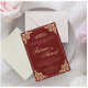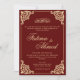 Faire-part de mariage islamique baroque musulman. Il y a un arrière - plan de couleur bordeaux solide avec un cadre d'angle en fibre vintage. Il y a une police de calligraphie or de luxe pour les noms du couple. Vous pouvez personnaliser cette carte en modifiant les informations écrites. Une enveloppe vierge est incluse mais vous pouvez choisir de ne pas l'acheter également. Visitez le magasin HerLineForDesign sur Zazzle pour voir d'autres invitations de mariage.