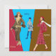 Invitation unique pour un défilé de mode vintage. L'avant a trois secteurs de vieille couleur - rouge foncé, brun bleu et chaud moyen. Trois exemples des modes du 20ème siècle comprenant ceux à partir de 1922, 1952, et 1968. Celui est à partir de 1922 a au-dessous du costume brun ceinturé par genou avec des accents dans le beige. Celui est à partir de 1952 un plaid rouge plissé au-dessous de la robe de genou avec les gants, les chaussures et le casquette rouges. Il est accentué par une écharpe blanche. Celui est à partir de 1968 un plaid bleu au-dessus de la robe de manteau de genou avec la ceinture, les gants, les bas, les chaussures et le casquette bleus.