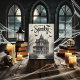 Réveillez vos invités pour une nuit de frayeurs avec cette élégante invitation de fête d'Halloween. Le design donne un ton mystérieux, avec une illustration frappante et détaillée d'un manoir gothique hanté, noyé dans la brume au bord d'un bois foncé. Un troupeau de chauves-souris survole le sommet, encadrant le texte du script "Soyons Éffrayants". La palette de couleurs vintage, monochromatique (noir et blanc/sépia) donne à l'invitation une sensation intemporelle et fraiche, parfaite pour une célébration sophistiquée et éffrayante. Cette invitation est idéale pour une fête de maison hantée, un événement à thème gothique, un dîner mystère de meurtre, ou tout rassemblement d'Halloween adulte. Tout le texte est facile à customiser avec les détails de votre parti. Commandez maintenant et préparez-vous pour un bon moment !