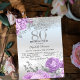Invitation Violet Flowers Glitter Silver 80th Birthday