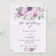 Arrière - plan violet, lavande aquarellé. Décoré de fleurs violettes et violettes aquarelles et verdure. Personnalisez et ajoutez vos noms et les détails de votre fête. Retour : ajoutez l'URL de votre site Web mariage au code QR pour plus de détails et/ou RSVP.