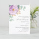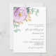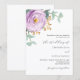 Un arrière - plan blanc. Décoré de violet, de fleurs violettes, de fleurs roses et de feuilles d'eucalyptus vert aquarellés, de sprigs, de verdure et d'un faux sprigs d'or. Personnalisez et ajoutez vos noms et détails.