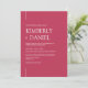 Cette invitation présente un style minimaliste moderne avec des polices de typographie en bloc propres et simples avec un arrière - plan viva magenta. La simplicité de ce design ajoute une touche d'élégance à votre mariage. Il fonctionne bien avec de nombreux thèmes mariages et certainement un grand ajout à votre mariage. Il suffit de customiser les noms et le libellé en quelques étapes simples et personnaliser la carte d'invitation avec votre photo du couple heureux et remplacer le code QR par le vôtre au dos de l'invitation pour donner à votre invitation une touche personnelle agréable. Si vous devez changer la couleur, vous pouvez customiser l'invitation à la carte. Vous pouvez customiser et personnaliser l'invitation afin de répondre à vos besoins mariages et cliquez simplement sur personnaliser de l'invitation. Vous pouvez facilement personnaliser cette invitation avec votre propre texte et la partager avec vos invités numériquement - que ce soit par le texte, par e-mail, ou par les médias sociaux. Si vous préférez, vous avez également la possibilité de poster une version imprimée à vos invités. Ou, vous pouvez faire les deux : envoyer une version numérique et le suivi avec une copie imprimée pour une touche personnelle!