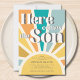 Cette joyeuse invitation au baby shower du garçon sur le thème du soleil présente "Here Comes The Son" dans la typographie rétro sur un arrière - plan de sunburst coloré. Facile à personnaliser.