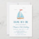 Célébrez le grand jalon de votre petit avec une invitation de premier anniversaire sur le thème nautique qui comprend un petit voilier mignon. Décor de fête dans notre boutique
