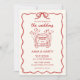 Annoncez votre mariage avec une invitation audacieuse et inoubliable, conçue pour saisir l'essence de la romance et de la fantaisie. Cette invitation illustrée à la main dans un rouge profond et passionné s’inspire de la papeterie française vintage, alliant charme d’antan à une touche moderne et ludique qui ravira vos invités. Avec chaque détail soigneusement dessiné à la main, cette invitation rayonne de sophistication et d'unicité, parfait pour donner le ton de votre Saint-Valentin ou de votre mariage italien. Cette invitation ne dit pas seulement aux invités quand et où; c’est une oeuvre d’art, une oeuvre vivante qu’ils voudront garder longtemps après la célébration. Les éléments illustrés à la main ajoutent une couche de texture et de charme à la fois funky et fantaisiste, offrant un clin d’oeil au design vintage français avec une touche fraîche et décalée. Avec ses bordures magnifiquement ornées, ses subtils fleurissements et ses touches de design imaginatif, cette invitation capte immédiatement l'oeil et parle de la personnalité d'un couple qui embrasse à la fois l'élégance et un sens de l'aventure. Imaginez cette invitation rouge frappante qui arrive dans le courrier - sa couleur riche et son design artistique sont des invitations instantanées à entrer dans un monde de romance. Pour les mariages de la Saint-Valentin, c’est un complément parfait qui capte l’esprit d’amour et de passion. Pour les célébrations d’inspiration italienne, l’invitation reflète la chaleur, la joie et le style spirituel qui caractérisent les rassemblements italiens, donnant des attentes pour un mariage qui déborde de vie, de rire et de joie partagée. Chaque invitation dispose d'un espace dédié pour vos noms, date, emplacement et tous détails spéciaux, élégamment encadrés par des oeuvres d'art uniques dessinées à la main qui feront que les invités se sentiront chéris et excités de vous rejoindre. Le luxueux ton rouge évoque une romance intemporelle, se mêlant harmonieusement à l'esthétique d'inspiration vintage tout en apportant une touche fraîche et contemporaine. Ce design est non seulement un moyen d'informer vos invités, mais aussi un beau gardien qui leur rappellera le jour spécial qu'ils ont partagé avec vous. Parfait pour les couples qui souhaitent imprégner leur mariage de caractère et de charme, cette invitation offre un sentiment de luxe vintage avec un côté ludique et moderne. Remettez-le à vos amis et à votre famille, en sachant qu’ils reçoivent quelque chose d’extraordinaire qui témoigne du sens et de l’inoubliable de votre journée de mariage. Cette invitation rend hommage à l’amour, au rire et à l’unicité de votre histoire, promettant un mariage élégant, sincère et vraiment unique.