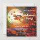 Une invitation à la fête d'Halloween avec une sorcière volant au-delà d'une pleine lune agitant les feuilles d'automne! Customisez l'exemple de texte à vos préférences. L'image arrière peut être supprimée.