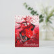 Invitation pour cette occasion spéciale, notes de musique rouge vif et guitare. La musique vit. faisant de cet événement un moment inoubliable.