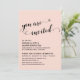 Voici un choix amusant et simple pour vos besoins de célébration après le mariage. Sur un arrière-plan modifiable, j'ai placé un graphique typographique qui indique "vous êtes invités" avec une police de caractères élaborée ornée de cœurs. En dessous, vos informations apparaissent dans une police simple en majuscules. Utilisez les champs du modèle pour ajouter vos propres informations et cliquez pour personnaliser davantage si vous souhaitez apporter d'autres modifications. Changez l'arrière-plan rose blush en n'importe quelle couleur que vous aimez. Toutes les couches sont déverrouillées pour vous permettre de contrôler le positionnement et la taille comme vous le souhaitez.