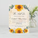 Un arrière - plan blanc et doré, orné de tournesols, de verdure d'eucalyptus, de feuilles dorés et de coeurs dorés, arrose. Personnalisez et ajoutez vos noms et les détails de votre fête.