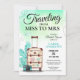 Célébrez les prochaines aventures de la future mariée en style avec cette invitation de voyage de Miss à Mme nuptiale ! Doté d'une valise d'inspiration vintage avec autocollants de destination et d'un arrière - plan d'aquarelle fantaisiste, ce design est parfait pour une fête amusante et unique. L'invitation comporte une police de script ludique et un mignon avion, ajoutant une touche de fantaisie. Personnalisez-le avec le nom de la mariée et les détails de la douche pour une invitation vraiment spéciale.