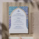 Invitation Walima - Arche géométrique Turquoise et turquoise avec accents or | Belle conception islamique avec calligraphie arabe et script moderne. Célébrez votre Walima béni avec une invitation qui combine les bénédictions sacrées, l'élégance et la beauté intemporelle. Doté d'une magnifique arche géométrique turquoise et turquoise, encadrée de colonnes gracieuses, cette invitation capture la richesse de l'art islamique. L'arrière - plan douce en ivoire, ornée d'éléments géométriques dorés subtils, crée un air de sophistication, tandis que l'envers fait écho à cet élégant design, assurant chaque détail sans faille. Conçu avec signification et beauté : - Bénédictions sacrées : Avec "Bismillah Irrahmaan Irraheem" en exquise calligraphie arabe, l'invitation donne un ton spirituel et significatif à votre célébration. Le salut islamique de Salaam est également rendu dans une belle calligraphie arabe, mettant l'accent sur la paix et l'unité. - Artistic Flair : Le mot "Walima" est écrit avec élégance dans une police moderne et manuscrite, avec des tourbillons gracieux qui ajoutent une touche artistique au design. Les noms du couple sont affichés dans une police Playfair sophistiquée, tandis que la police Folio élégante garantit que chaque détail de l'événement est clair, raffiné et facile à lire. Pourquoi cette invitation est inoubliable : - Ton sacré et spirituel : Cette invitation Walima reflète le caractère sacré de votre union et célèbre la signification spirituelle de votre mariage avec des phrases arabes significatives. - Design élégant et dynamique : Les riches teintes turquoises, turquoise et marine, associées à des accents dorés, créent un chef-d'oeuvre visuel époustouflant qui rayonne de grâce et de beauté. - Personnalisable pour votre journée spéciale : Personnalisez cette invitation avec vos noms, date mariage et lieu pour en faire un reflet unique de votre histoire d'amour. Customisez chaque détail pour correspondre parfaitement au ton de votre célébration. - Cherished Keepsaké : Une invitation magnifiquement conçue que vos invités apprécieront longtemps après votre Walima, un gage d'amour et d'unité qui résonne profondément avec eux. Caractéristiques du produit : - Design : Arc géométrique complexe en turquoise, turquoise et marine, encadré par des colonnes d'inspiration islamique sur un arrière - plan en ivoire mou aux accents dorés. - Personnalisable : Personnalisez l’invitation avec les noms du couple, la date du mariage et le lieu où elle est réservée. - Qualité de qualité supérieure : Conçu sur des matériaux de haute qualité pour une finition luxueuse, garantissant que chaque détail est parfait et durable. - Continuité élégante : Les accents géométriques dorés subtils se transportent à l'envers, créant un design global poli et raffiné. - Parfait pour votre Walima : Idéal pour votre célébration de Walima, ou toute occasion spéciale où l'élégance, la beauté et la signification spirituelle sont essentielles. Donnez le ton à votre bienheureuse Walima : Votre Walima est un moment de joie, d'amour et de foi - laissez cette invitation refléter la beauté et le caractère sacré de votre union. Le mélange harmonieux de couleurs vives, d'art complexe et d'élégance raffinée vous laissera une impression durable. Dès le premier moment, cette invitation donnera le ton d'une célébration qui rayonne de beauté, de grâce et d'amour. Commandez dès aujourd’hui et faites de votre Walima une expérience inoubliable : ne manquez pas l’occasion de créer une première impression mémorable avec cette magnifique invitation. Personnalisez-le pour refléter votre histoire d'amour, et assurez-vous que votre célébration commence avec élégance et beauté. —Commandez maintenant pour obtenir votre invitation parfaite!