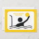 Joueur de water-polo silhouette noire invitation événement personnalisé qui affiche une icône pictogramme minimaliste d'une silhouette noire d'un joueur de water-ball tenant sa balle devant le but et votre texte sur l'arrière - plan blanc avec bordure jaune. Personnalisez-le et changez le texte avec monogramme, nom ou message. Le cadeau parfait pour l'athlète de water polo ou l'amant dans votre vie.