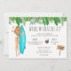 L'invitation à la fête de la plage de la bachelorette tropicale présente une fille blonde aquarelée avec planche de surf. Détails de l'événement au verso de l'invitation. Peut être customisé pour tout événement.
